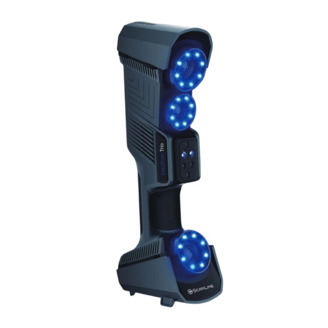 ScanLine EasyScan Trio — универсальный лазерный 3D-сканер метрологического класса, предназначенный для точных измерений, контроля качества и реверс-инжиниринга. Модель оптимально подходит для работы со средними и крупногабаритными объектами, сочетая высокую скорость сканирования, точность до 0,02 мм и встроенную фотограмметрию.